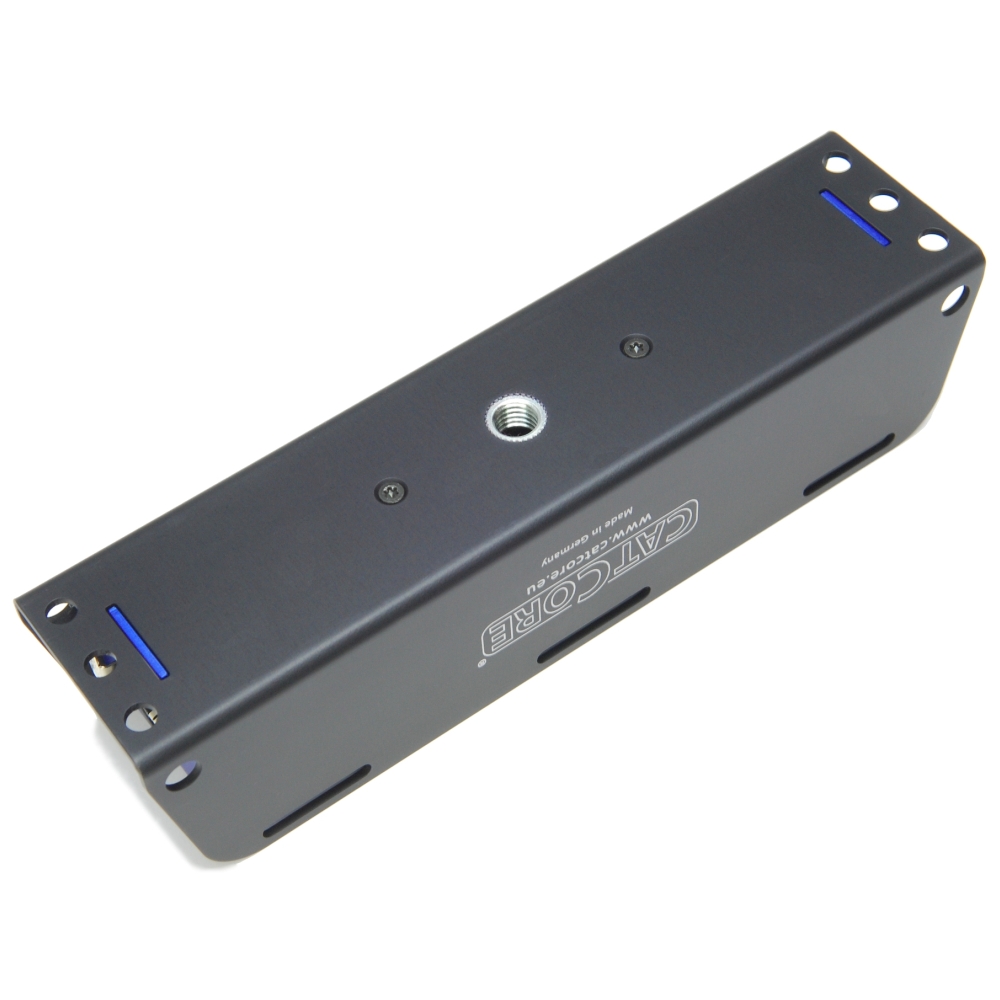 BEFESTIGUNGS- UND SICHERUNGSMÖGLICHKEITEN: M10 Gewindehülse auf der Unterseite,Auf der Oberseite 6 x Langloch zur Aufnahme von Klettband oder Kabelbindern, an der Unterseite an außerhalb des Grundkorpus liegenden Bodenflächen 6 x Befestigungsloch 6mm für Schraubmontage. An den Seitenflanken außerhalb des Grundkorpus liegend 4 x Befestigungsloch 7mm für Fangseil oder seitliche Schraubmontage.